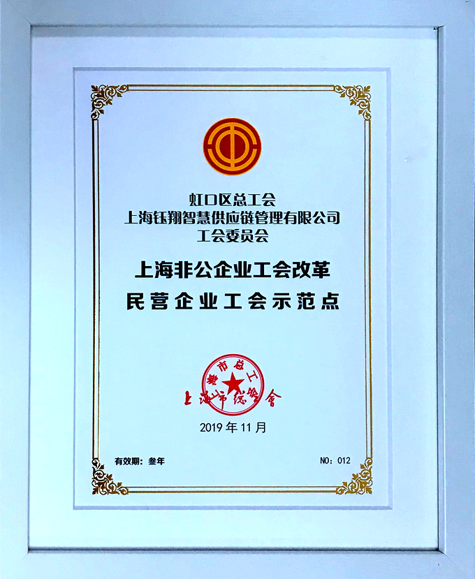 12月24日,上海市總工會召開上海推進(jìn)非公企業(yè)工會改革工作現(xiàn)場會,上海市一批“小二級”工會示范點、民營企業(yè)工會示范點作為推廣先鋒隊在會上受到了表彰,上海鈺翔智慧供應(yīng)鏈管理有限公司工會被授予“上海非公企業(yè)工會改革民營企業(yè)工會示范點”。