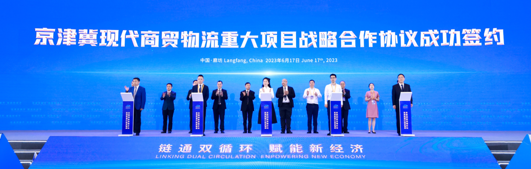 6月17日,以“鏈通雙循環、賦能新經濟”為主題的首屆京津冀現代商貿物流金融創新發展論壇作為2023年中國·廊坊國際經濟貿易洽談會的重點活動之一,在廊坊市絲綢之路國際藝術交流中心成功舉辦。論壇上,在河北省副省長時清霞、廊坊市委副書記、市長李國勇、中國物流與采購聯合會副會長任豪祥、河北臨空集團有限公司黨委書記、董事長韓金虎、廊坊銀行黨委書記李克儉等領導的見證下,廊坊銀行黨委副書記、董事長邵麗萍與上海鈺翔科技集團董事、副總裁葛衛國簽署了京津冀現代商貿物流重大項目戰略合作協議,為鈺翔特色供應鏈業務在京津冀的發展提供全方位的金融支持。